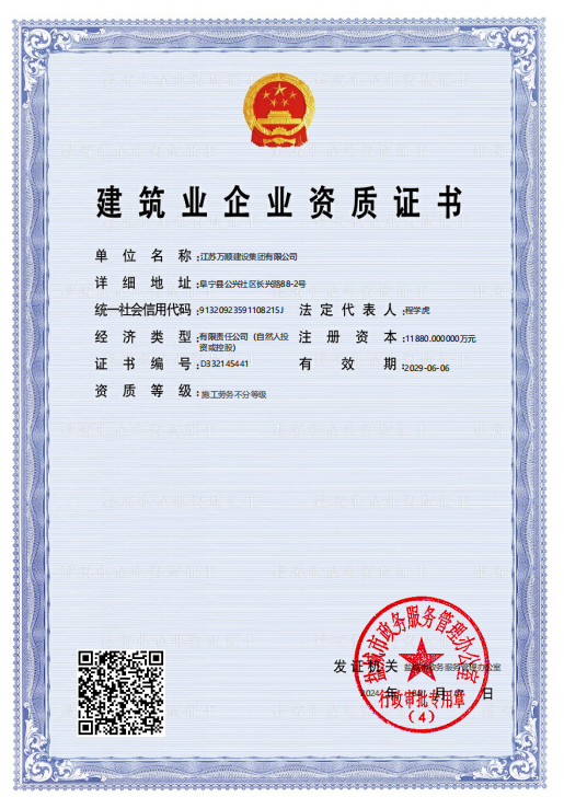 • 萬順集團晉升為江蘇省二級資質建筑單位2015-02-28